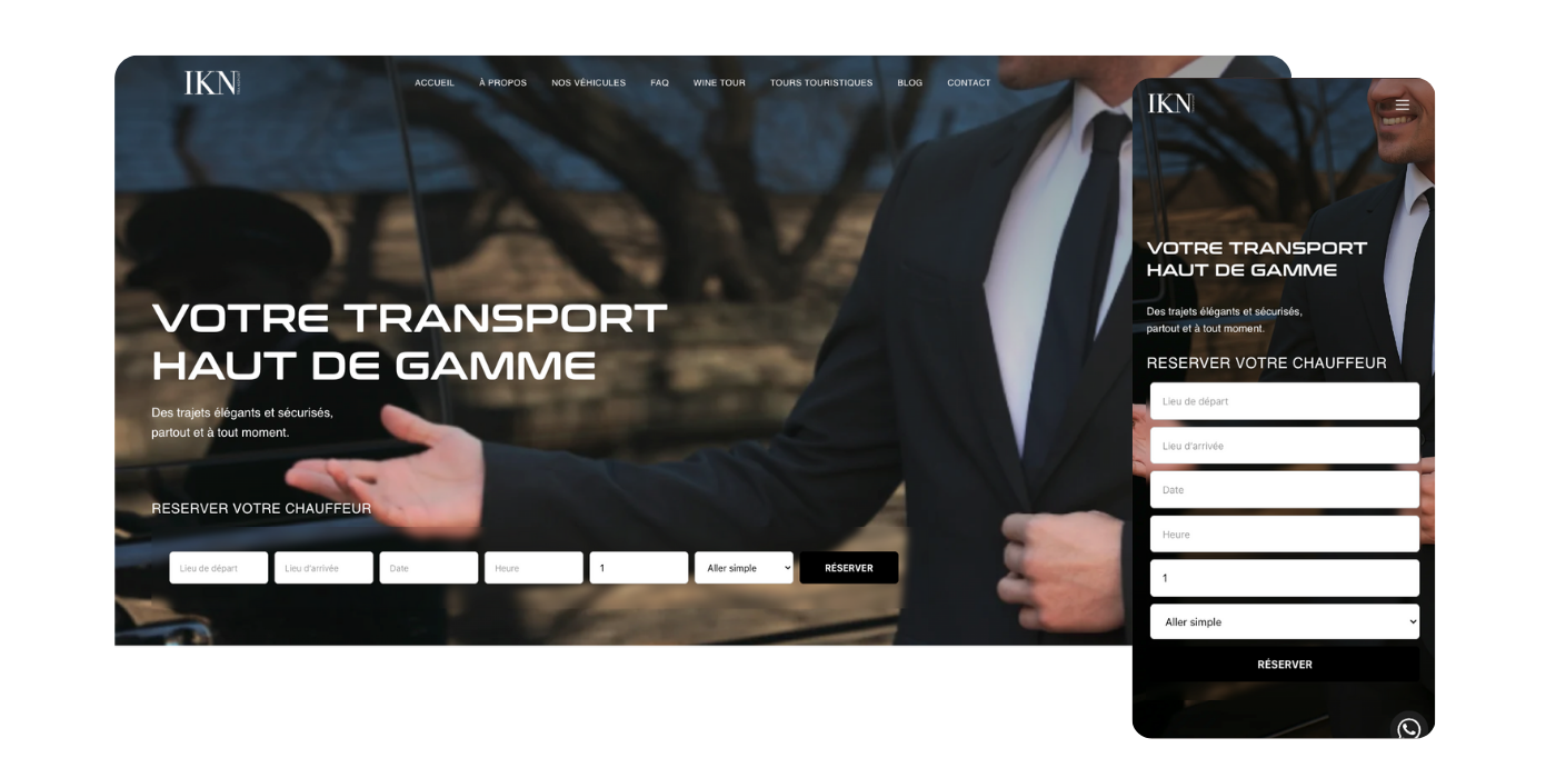 Créer un site vitrine moderne, attractif et totalement orienté conversion, permettant à IKN Transport d’offrir un système de réservation simple, rapide et intuitif, inspiré des standards d’applications comme Uber, tout en renforçant son positionnement premium.